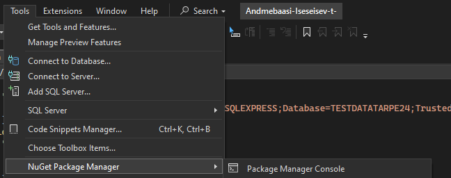 Nüüd et teha Database-First migration siit meil on vaja teha „Reverse Engineering“