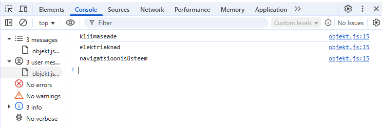 Ja selles objektis saan elemendid kätte “punkti-süntaksiga”, nagu eespool