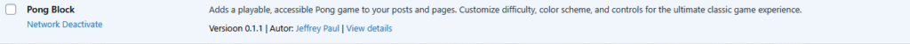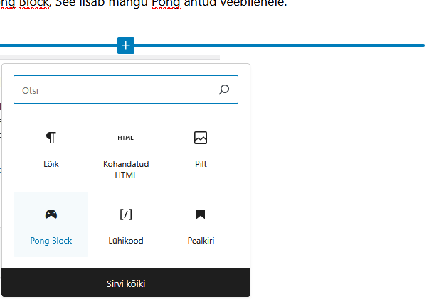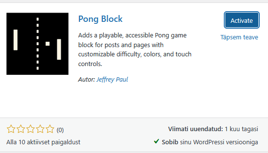 Leidsin selle plugini nimega Pong Block, See lisab mängu Pong antud veebilehele.